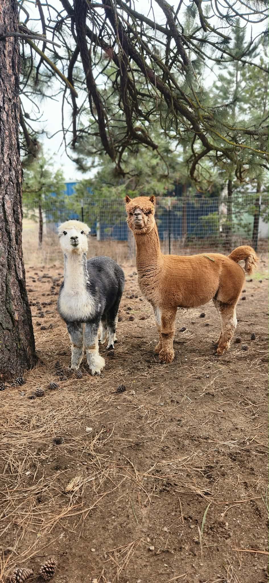 Here you will learn more about our herd, who they are, and what they do! Every animal on our ranch serves a purpose, both on the ground within the herd, and off the body, at my markets (Ahem... their fiber!!) Each individual alpaca is unique in their own way, with their own unique personalities, quirks, and even fiber. Rancher Karee can tell you exactly whose fiber is whose when it is in bags after shearing! Our entire herd, males and females alike, is a mix of fiber animals as well as breeding stock. There are 22 natural colors of alpaca fiber, and we have nearly all 22 colors within our herd! We of course have several of each color, with no particular color being Rancher Karee's favorite, she loves them all!