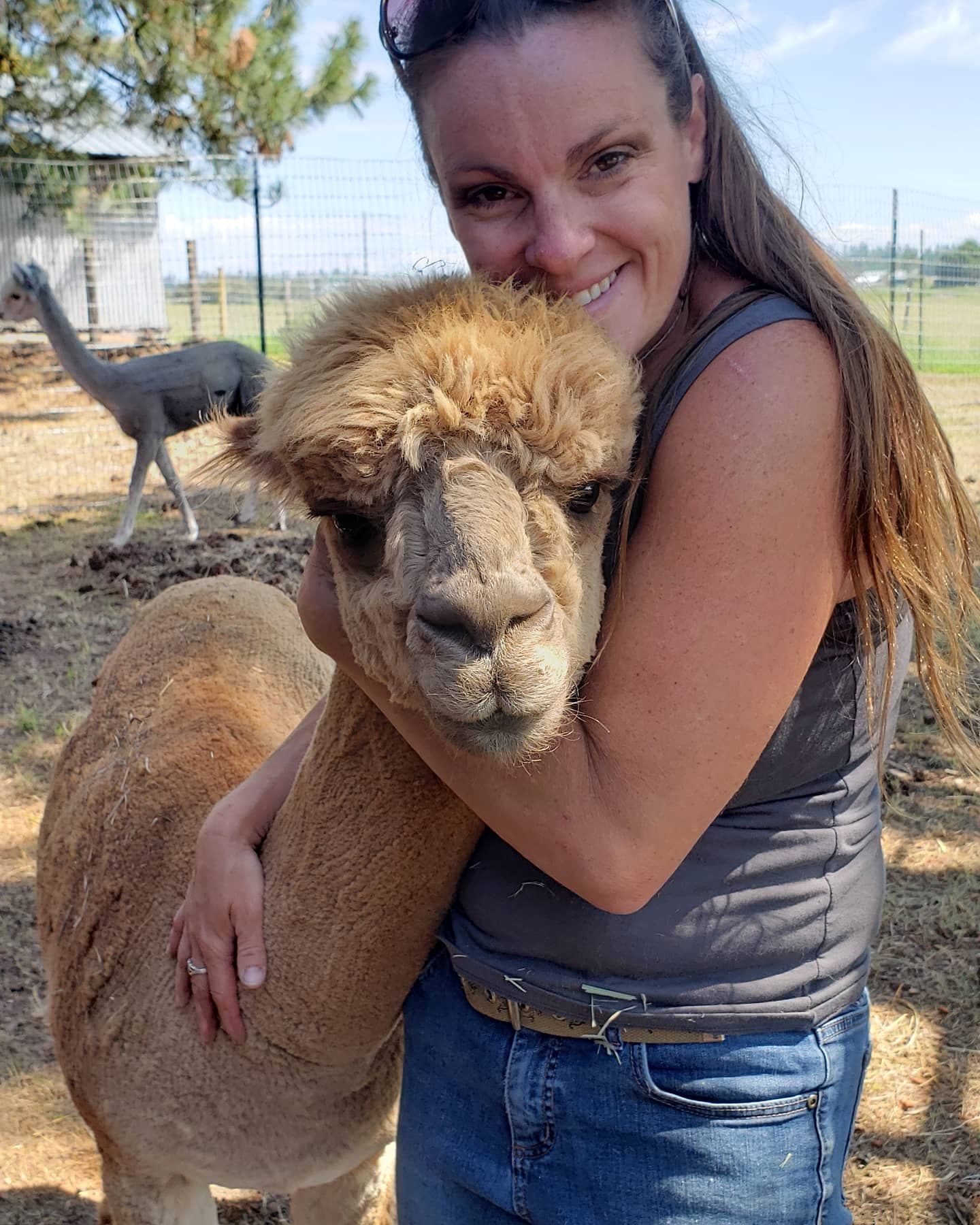 Rancher Karee can most commonly be found working among and with the animals. She spends most of her time at the ranch, outside, with them, doing some sort of chore or activity with the alpacas. She loves the fleece, and loves working with the fleece after shearing!